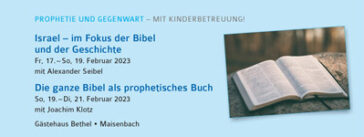Auch dieses Jahr im Herbst laden wir wieder zur Israelkonferenz nach Maisenbach ein. Das Thema lautet: »Die Zukunft Israels« – Teil 2. Als Referenten sind mit dabei: Pfarrer Dr. Wilfried … Weiterlesen