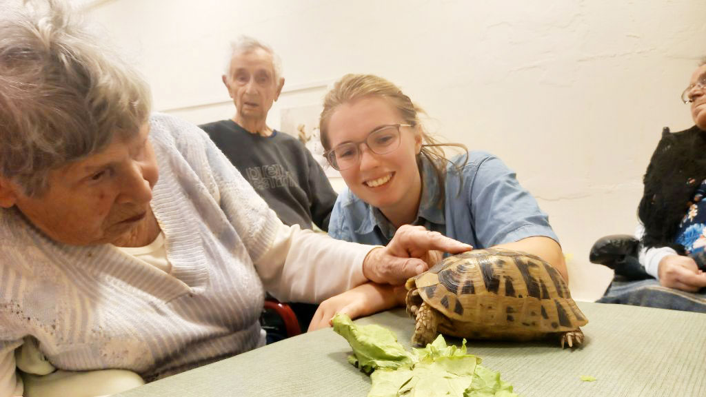 Manchmal kommt der Garten auch in den Bunker: Die Schildkröte, die sich eigentlich nur sonnen wollte, wurde kurzerhand in den Bunker getragen und bestaunt.