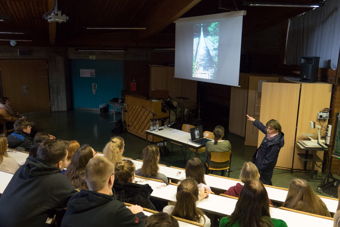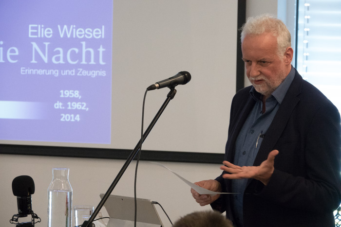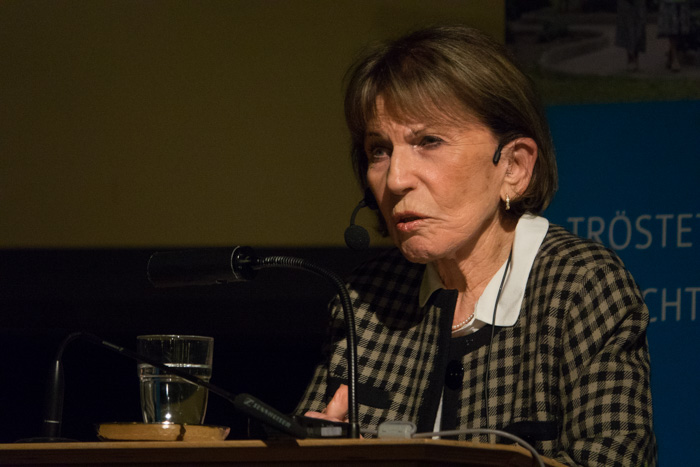 Prof. Dr. Boschki erzählte von seinen Begegnungen mit dem Holocaust-Überlebenden und Friedensnobelpreisträger Elie Wiesel – und von dessen Erlebnissen, seinem umfangreichen literarischen Werk sowie seinem tiefschürfenden Ringen mit Gott.Christin Zühlke von der TU Berlin hat sich intensiv mit dem »Sonderkommando« beschäftigt, Häftlingen, die gezwungen waren, die ermordeten Menschen aus den Gaskammern zu schaffen und zu verbrennen. Schriftliche Quellen belegen, dass Juden auch im Angesicht des Todes ihren Halt im Glauben suchten.Rami Suliman, Vorsitzender der Israelitischen Religionsgemeinschaft Baden, Zeitzeugin Ruth Michel, Prof. Boschki, Christin Zühlke und Schuldekan Thorsten Trautwein unterhielten sich unter anderem über die Lehren aus dem Holocaust und die Herausforderungen des jüdischen Lebens heute in Deutschland.Eine Exkursion nach Pforzheim unter der Leitung des Denkmalpflegers Dr. Christoph Timm rundete die Tagung ab. Höhepunkt war der Besuch der Synagoge sowie Erklärungen und der aaronitische Segen durch Rabbi Jaakov Bar-Lev.Ruth Michel überlebte als Halbjüdin auf der Flucht. Ihr Vater wurde hingerichtet und in einem Massengrab in der heutigen Ukraine verscharrt. Die 91-Jährige sieht ihre Verpflichtung darin, den Ermordeten eine Stimme zu geben.Fast 400 Besucher hatten sich im Kurhaus eingefunden.Die Mitwirkenden des Abends (v.l.n.r.): Bürgermeister Dietmar Fischer, Sängerin Annika Moor sowie ihr Lehrer und Pianist Marcus Degelmann, Dr. Dorothea Kliche-Behnke, stellv. Landesvorsitzende der SPD, Ruth Michel, Schuldekan Thorsten Trautwein, Zedakah-Geschäftsführer Frank Clesle, Timo Roller (Morija) sowie Martin Meyer, der Vorsitzende von Zedakah.Ruth Michel zeigt den Schülern des Bildungszentrum Wildberg Bilder von ihrer Reise in die Ukraine, wo sie sich für die Erhaltung und Pflege des Massengrabs, in dem ihr Vater liegt, einsetzt.Ein Reporter von Regio-TV befragt Schülerinnen nach dem Zeitzeugenbericht.