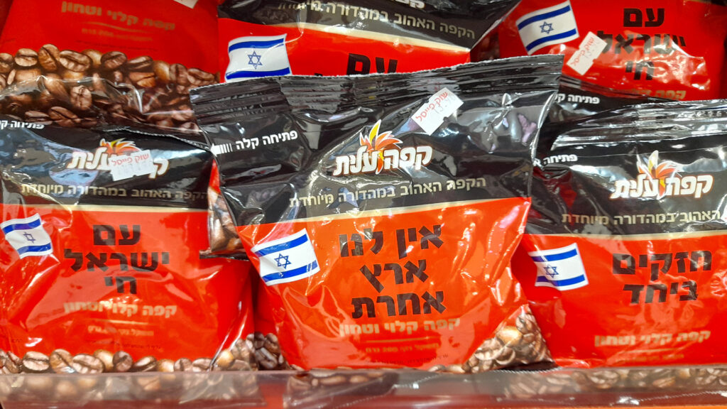 »Ein li eretz acheret« (»Ich habe kein anderes Land«; hier ein YouTube-Video mit englischer Übersetzung) – Wie kaum ein anderes Lied beschreibt dieses in wenigen Sätzen ein Gefühl, das viele Israelis verbindet. Seit seiner Entstehung vor über 40 Jahren ist es eine inoffizielle Hymne, die in existenziell herausfordernden Zeiten erklingt. So auch heute: »Unser« Chor wird es beim Auftritt nächste Woche singen, im Radio ertönt es und der Titel ist auf Aufklebern und Kaffeepackungen allgegenwärtig.