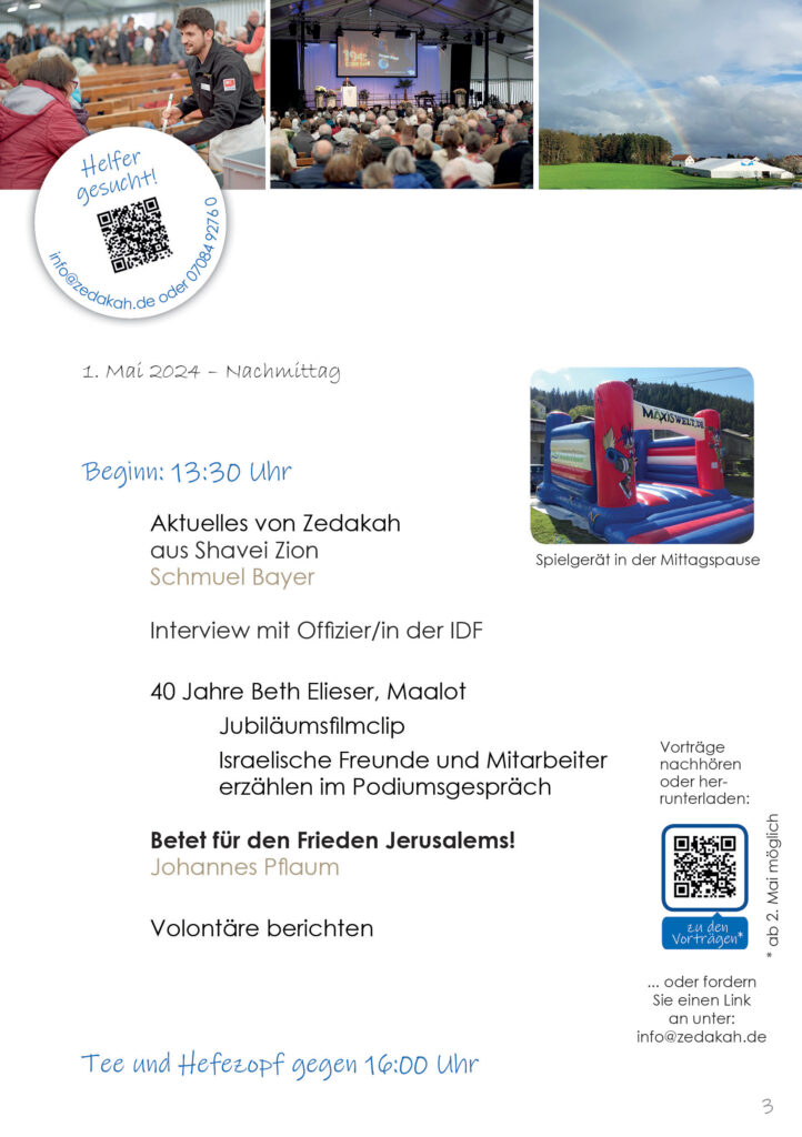 Wir freuen uns, dass Gideon und Nelli auch dabei sein werden. Ein Teil der Vormittagsveranstaltung wird ihrem gefallenen Sohn Urija Bayer gewidmet sein. Außerdem wird Arye Sharuz Shalicar, der Sprecher der IDF (in Reserve) online zugeschaltet sein. Auch werden Offiziere der IDF über ihre Erlebnisse im Krieg berichten, sofern sich die Situation in Israel nicht verändert.