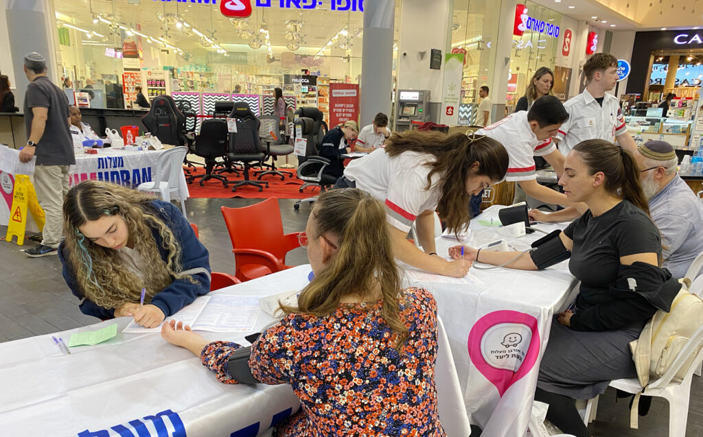 Als einige Mitarbeiter einem Aufruf zum Blutspenden nachkamen und wir in ein zentral in Maalot gelegenes Einkaufszentrum fuhren, wirkte alles wie vor dem Krieg: Autos auf den Straßen, kein Militär in Sichtweite und gefüllte Parkplätze, das waren die ersten Eindrücke in der Stadt. Nachdem die erste Gruppe mit Blutspenden fertig war und sich bei einem Bäcker anstellte, ertönten plötzlich ringsum auf den Handys einiger Menschen Alarmtöne der Raketenwarn-App. Eine Zedakah-Volontärin, die sich währenddessen nur wenige Meter entfernt im Supermarkt aufhielt, ging auf Anweisung anderer mit in den Schutzraum.