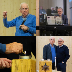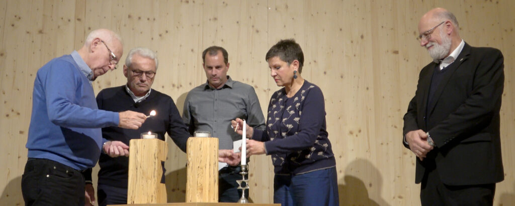 Abschließend gab es ein Zeichen der Versöhnung und Hoffnung: Franklin und Fredy Kahn, die beiden schwäbisch-jüdischen Vettern, entzündeten gemeinsam mit Franziska Becker sowie Martin Meyer, dem Vorsitzenden von Zedakah, eine Doppelkerze zum Gedenken an die Opfer des Naziterrors. Und auch den Opfern vom 7. Oktober 2023 wurde gedacht, als während des Hamas-Angriffs in Israel wieder Juden umgebracht wurden, weil sie Juden waren. An die über 200 israelischen Geiseln, die immer noch im Gazastreifen gefangengehalten werden, erinnerten drei leere Stühle mit Plakaten und Blumen. Der sichtlich bewegte Franklin Kahn rezitierte das jüdische Trauergebet »Kaddisch«, bevor Martin Meyer zum Abschluss einen Psalm betete.