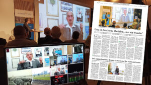 Etwa 170 Besucher hatten sich im iP-Zentrum des Hilfswerks Zedakah e.V. in Maisenbach versammelt, um Avigdor Neumann zuzuhören. Er war aus seinem Wohnzimmer in Israel zugeschaltet. Dem Gedenkabend ging am diesjährigen Holocaustgedenktag ein Seminar für Lehrkräfte und Interessierte voraus. Die etwa 60 Teilnehmer bekamen – mit Blick auf den aktuellen Krieg gegen die Hamas – durch zwei Experten tiefgreifende Einblicke in die Ursachen des Nahostkonflikts und in die Bedeutung insbesondere des islamistischen Antisemitismus.