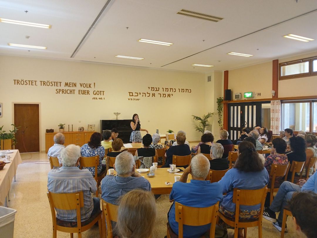 Besonders bewegend war die erstaunliche Überlebensgeschichte von Jasmin Porat im Rahmen einer Veranstaltung der Shavei Zioner Senioren. Am 07.10.2023 floh die Enkelin von Auschwitzüberlebenden unter Raketenbeschuss vom Nova-Festival, versteckte sich bei einem ihr bis dahin unbekannten Ehepaars im Kibbutz Beeri im Schrank eines Schutzraums, wurde dort von Terroristen gefangen genommen und blieb auf wunderbare Weise am Leben – „Gott holte mich mit der Pinzette dort raus“.