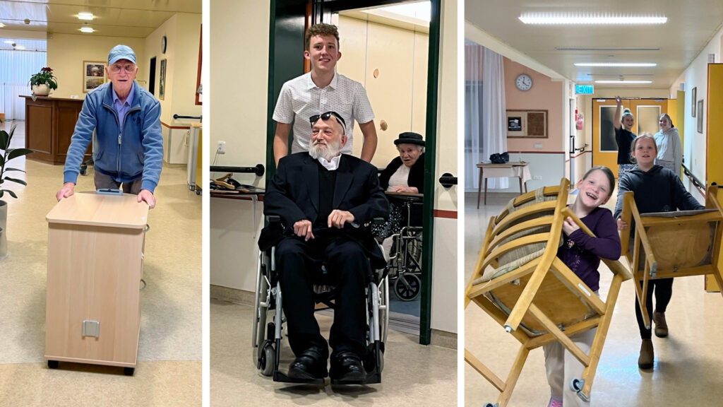 Dann der spannendste Moment: Die Aufzugtür öffnet sich, die 11-jährige Ruthi steht mit der Kamera bereit, um die bewundernden Blicke der Heimbewohner einzufangen. Der Salon ist für den Kabalat Schabbat vorbereitet, der Tisch festlich gedeckt, das Ganze bei einer wohnlichen Atmosphäre. Selbst einer der jüngsten Heimbewohner, der am Abend zuvor die Nachricht von unserem bevorstehenden Umzug eher mit einem Anflug von Bedauern aufgenommen hat (er möchte die Vorteile seiner »Einzel-Suite« im Treppenhaus nur ungern aufgeben), findet nun Worte des Lobes: »Da habt ihr aber nicht zu viel versprochen!«