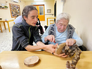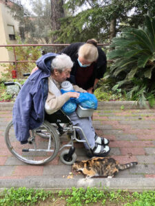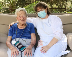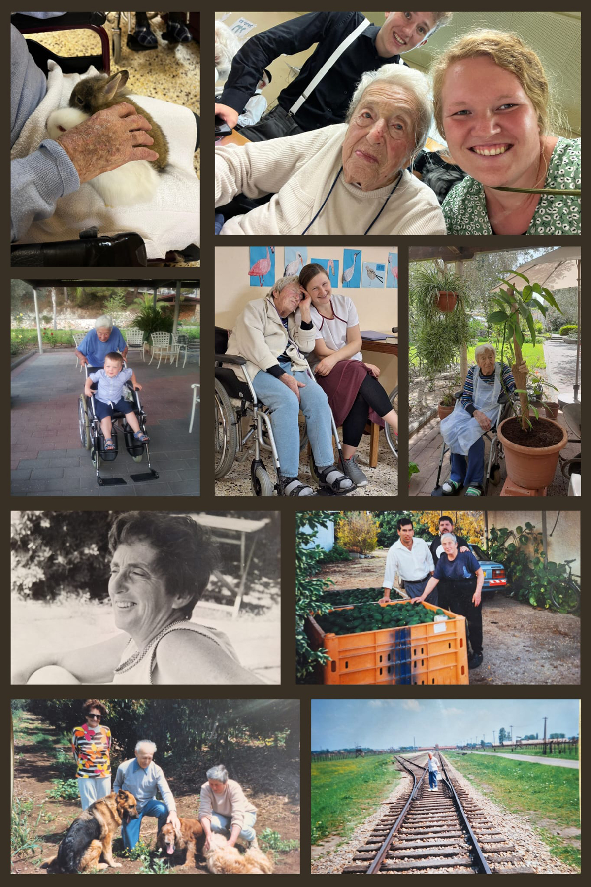 Frau Rachel hatte immer eine große Liebe zur Natur, dem Garten und den Tieren. Sie hat die Bäume im Garten wahrgenommen – dass sie schief sind und gestützt werden müssen. Sie hat die Blumen auf dem Tisch wahrgenommen und mich einmal darauf aufmerksam gemacht, dass die Blumen richtig angeschnitten sind, (was sie durch die Vase gesehen hat). Sie war eine sehr eifrige Moadonbesucherin (»Moadon« heißt unsere Beschäftigungstherapie), die jede Tätigkeit geschickt ausführte, was mich immer wieder fasziniert hat. Das letzte Projekt war die Volieren-Innenausstattung, wo sie noch ganz selbständig die Ringe zu Ende geflochten hat. Frau Rachel hat nach dem Bunkerauszug auf dem Weg zum Frühstück gesagt, was über ein Jahr nicht möglich war: »Draußen regnet es.« – Jede Umarmung war viel besser als das Essen. Wir haben sie sehr geliebt. Sie wird uns in guter Erinnerung bleiben.