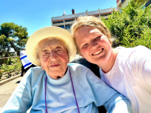 Die tapfere Frau Rachel mit ihrem Herzen voller Barmherzigkeit! Wenn ich für die Heimbewohner bete, habe ich immer zuerst an sie gedacht. Als Mädchen war sie mit ihrer Familie in der Oper und im Theater, mit Lackschuhen, im schwarzen Samtkleid, mit dickem Zopf. Sie hat immer so lieb von ihrem Vater erzählt, der ein Arzt und Tierfreund war. Und dann hat ihr der Holocaust alles zerbrochen. Trotzdem konnte sie nach dem Krieg zwei elternlose Jungen als ihre eigenen annehmen und großziehen, kümmerte sich als Bäuerin im Kibbuz um Avocadobäume und ihren Gemüsegarten, vor allem aber um alle Tiere, große und kleine – und auch um Menschen, kleine und große. Ihr im Beth Elieser wart ihr ein großer Segen, Trost und Beistand über viele Jahre. Ich denke daran, wie Frau Rachel Brotrinden und Grünzeug in der Stationsküche abgeholt hat, um in großer Treue die verschiedenen Kaninchen und den Chinchilla zu versorgen – am liebsten schon vor ihrem eigenen Frühstück. Hoffentlich hatte sie es nicht zu schwer auf ihrem letzten Weg. Gott sei ihr gnädig. Die Erinnerung an sie ist mir zum Segen. Ich habe sie sehr lieb gehabt. Sie wird mir fehlen.
