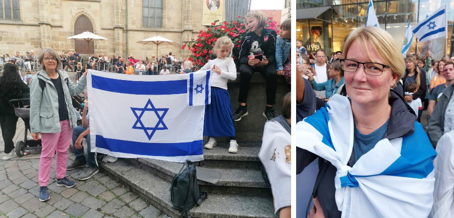 - Uns offiziell an die Seite Israels zu stellen. Dafür bietet sich derzeit, so oft wie noch nie, die Chance mit anderen ins Gespräch zu kommen. Dies führt beim Gegenüber zu so manchem Aha-Erlebnis, zum Nachdenken und Umdenken.